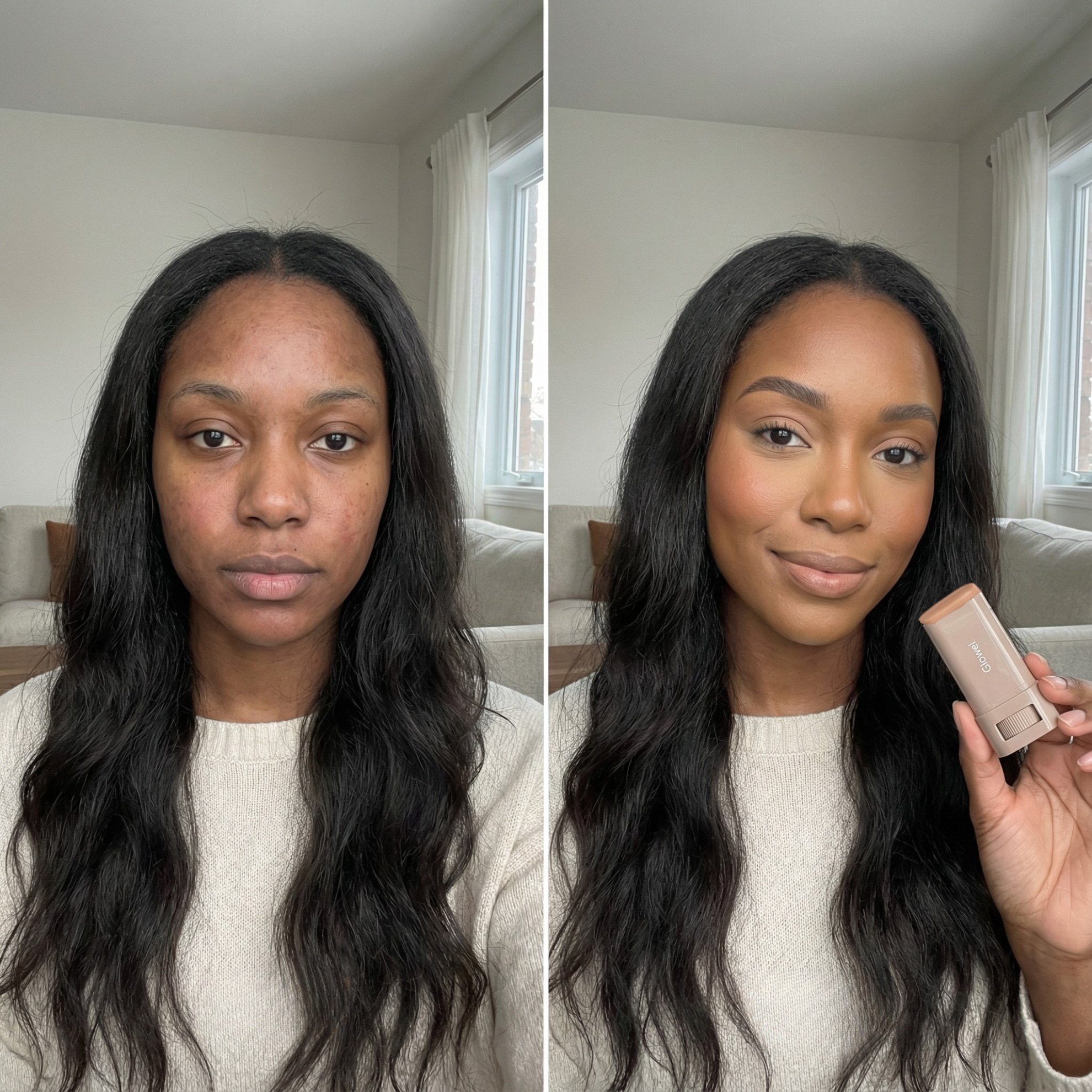 Glowin lisse le grain de peau, atténue les ridules, floute les cernes et réduit l’apparence des boutons, taches et cicatrices d’acné pour un teint instantanément unifié.